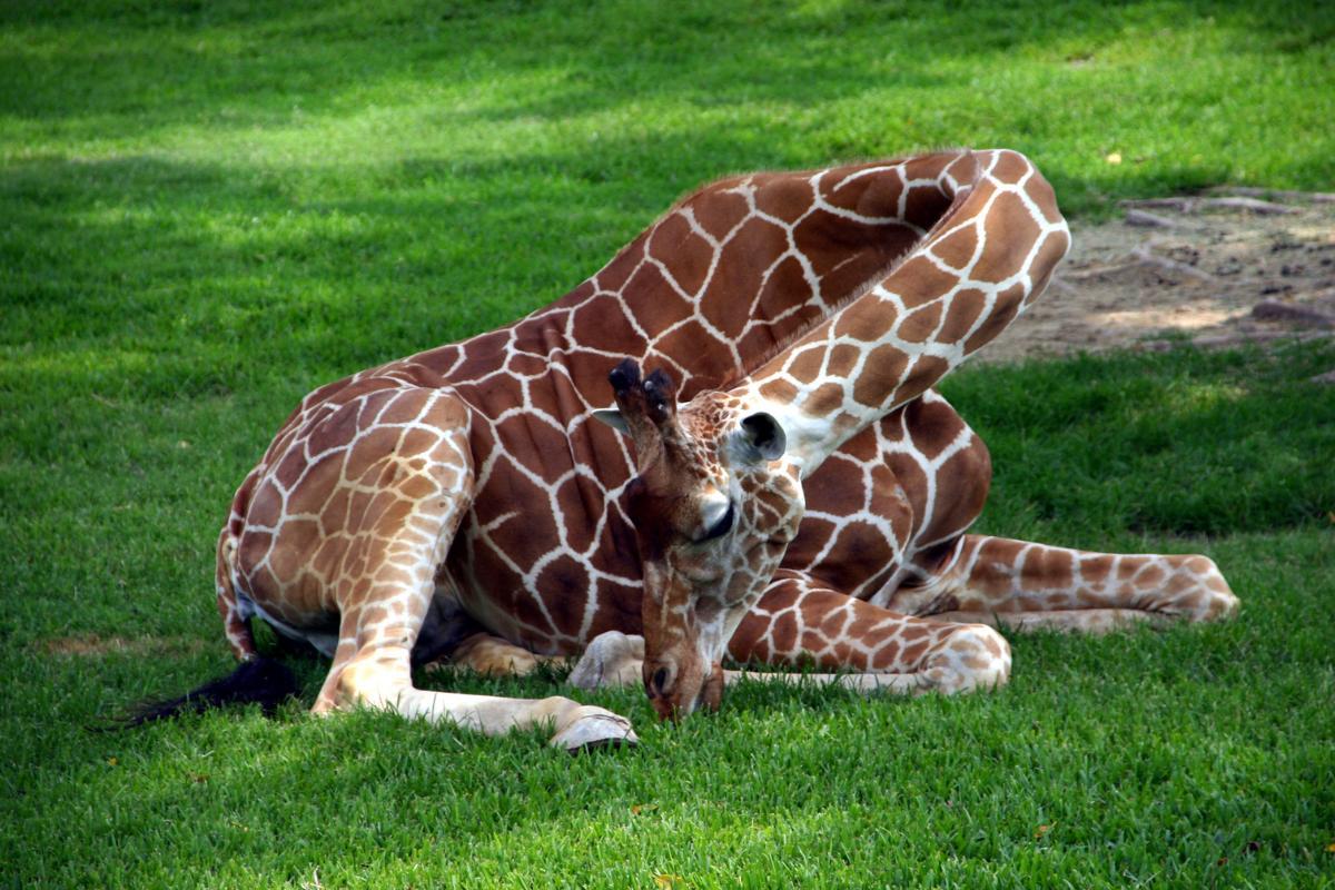 To lie down, a giraffe folds its legs under its body, much like a camel. Then, it might do something remarkable — it bends its neck around and rests its head on its hip or even along its back. This tucked position allows for deeper, more restorative sleep.